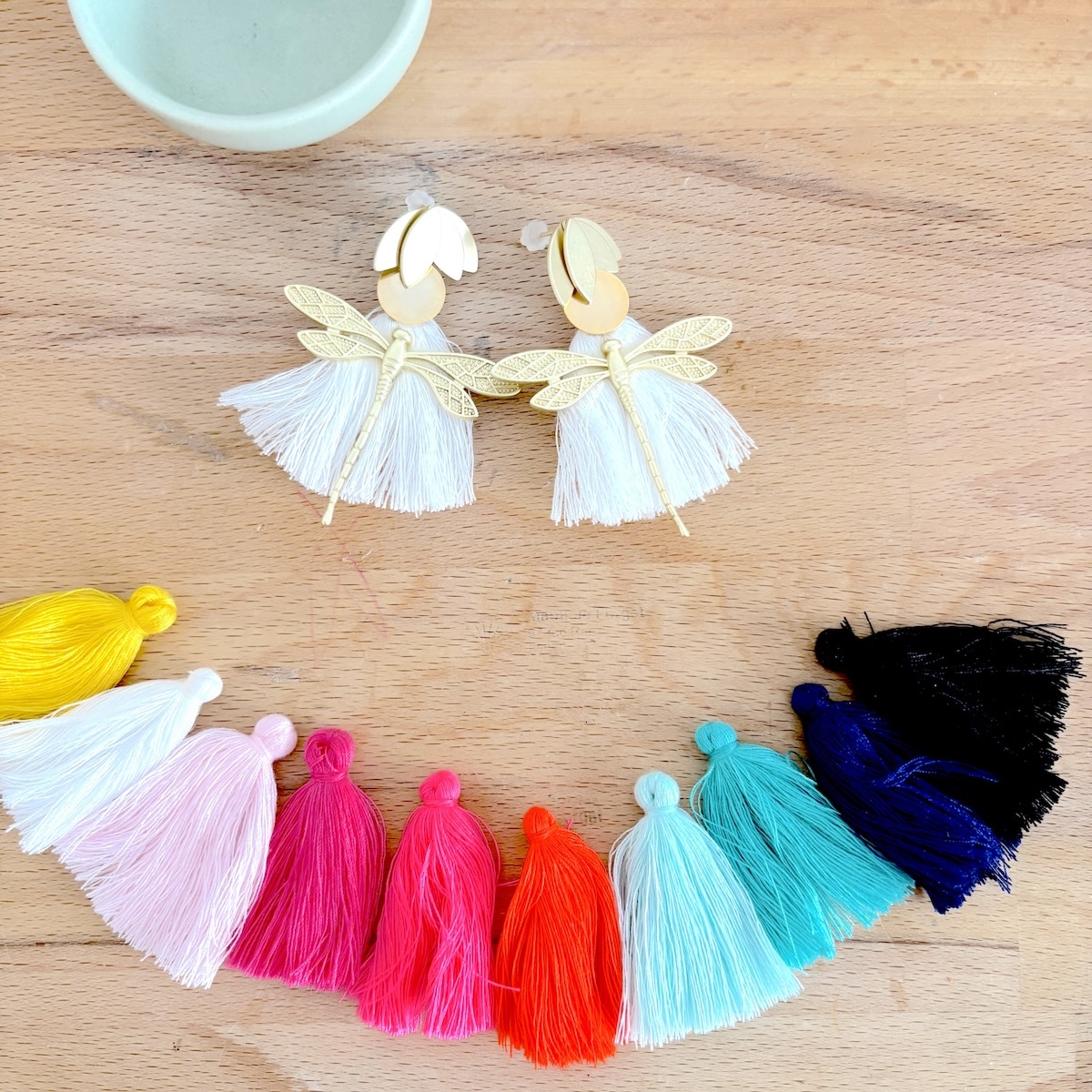 N’hésitez pas à lisser les pompons avant de porter vos boucles d’oreille afin de leur redonner leur forme initiale (si besoin vous pouvez ajouter un coup de fer à repasser pas trop chaud).