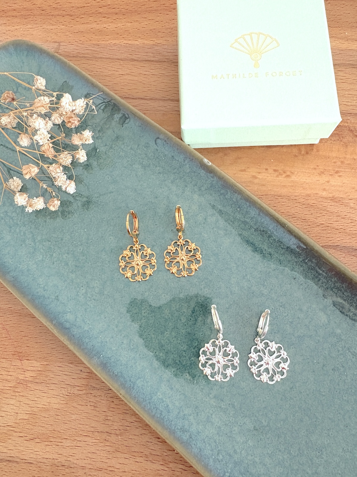 Conservez vos bijoux à l’abri de l’humidité et de l’air, idéalement dans leur boîte.