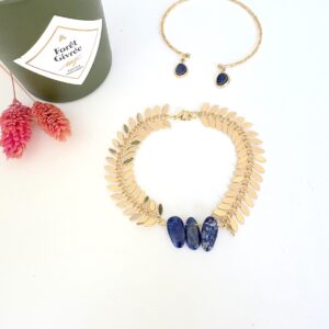 Un bracelet en laiton doré à l’or fin avec 3 pierres en lapis lazuli.