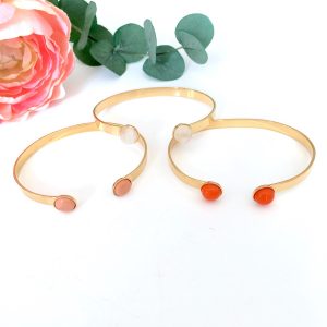 Jonc en métal doré, argenté ou métal doré à l’or fin  au choix, orné de deux cabochons.